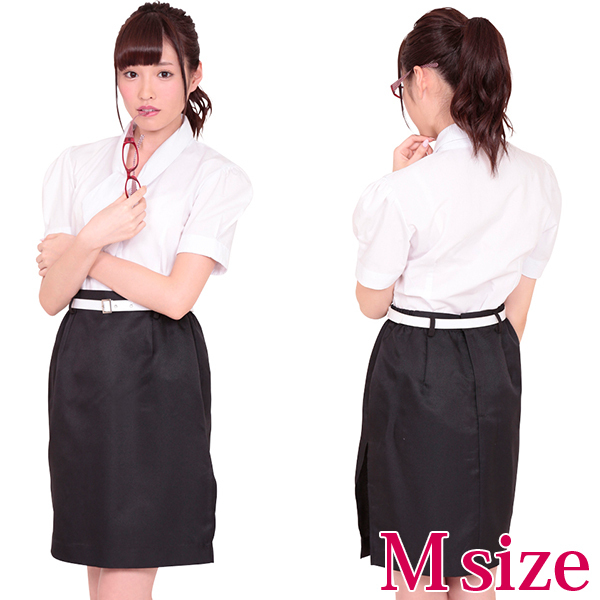 適応サイズ:B78〜88cm・W58〜70cm・H87〜95cm セット内容:半袖ブラウス・スカート(丈52cm・スリット18cm)・ベルト