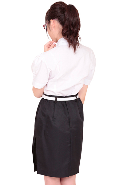 清楚な白の半袖ブラウスが男性の好奇心を煽る、あこがれの女教師コスプレ衣装です。サイドに深いスリットが入ったスカートはとてもセクシー!知的で大人っぽい女性にへ変身したら、周囲の人気も独り占め!※メガネは付属しません