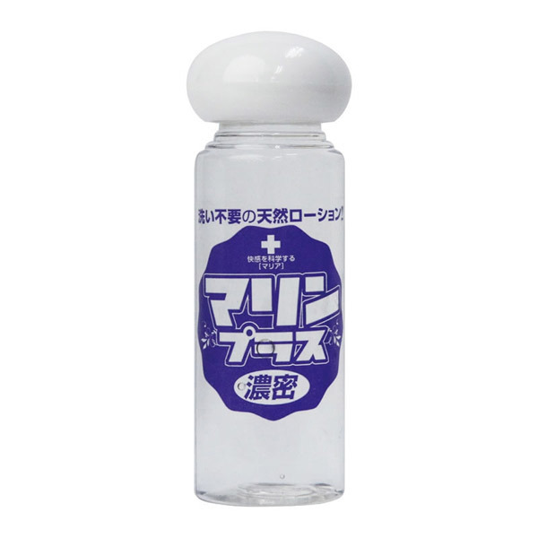 とろーり濃厚ながらサッと拭き取り♪洗い不要タイプの天然ローション「マリンプラス洗い不要・濃密 50ml」。内容量50mlのミニボトル入りでサッと使えて携帯にも便利!ねっとりとハードに絡んでくれる濃密粘度ながら、洗い不要タイプで拭き取り後も嫌なベタつきが一切残らない抜群の使用感。無色透明無臭の水溶性ローションです。