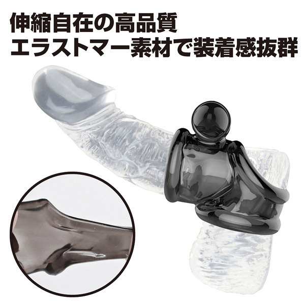 超絶怒涛の3点締め!ローター付き電動ペニスサック「JUSTICE(ジャスティス)」。竿の根元と玉袋を締め付けながらクリトリスを刺激する攻撃力高めの男性用補助グッズ。伸縮自在の高品質エラストマー素材で装着感抜群!ローターは本体から着脱できるのでいつでも清潔に使えます。ボタン電池(LR44)×3個付属。