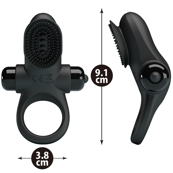 高品質な医療用シリコンが根元から締め付け性活をロングサポート!超強力振動モーター搭載の電池式ペニスリング(単4電池×1本使用)。貴男のアソコをギュッと締め付けながら、パートナーの敏感ポイントをブラシ状のヘッドと10パターンの強力振動が刺激!相手をイカせて貴方も絶頂へ♪生活防水&静音設計