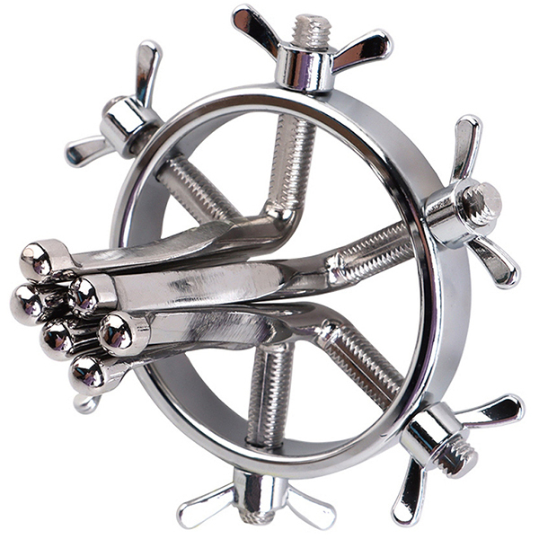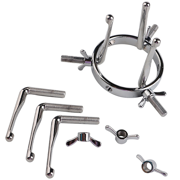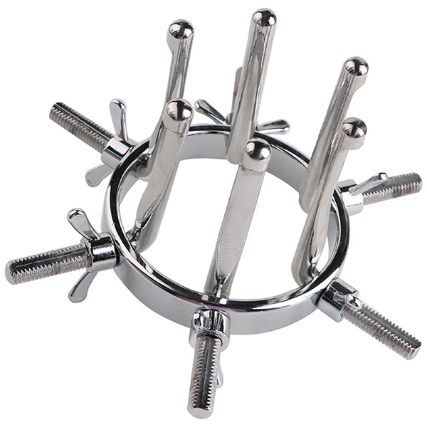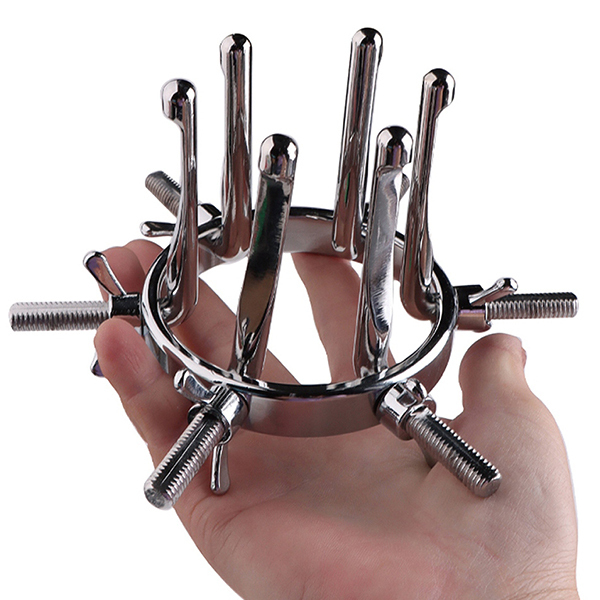 アソコやアナルを6本のステンレス支柱が拡張!簡単に使えるSMVIP ジェニタル クランプ。使い方は簡単で、6本の支柱を中心に寄せてから穴に挿入!その状態で6本のネジを少しずつ締めることで穴が開いていきます。おまんこやアナルの穴の奥の観察、または太いモノを挿入するときの準備にも役立ちます♪パートナーとのプレイや羞恥プレイなどにどうぞ。