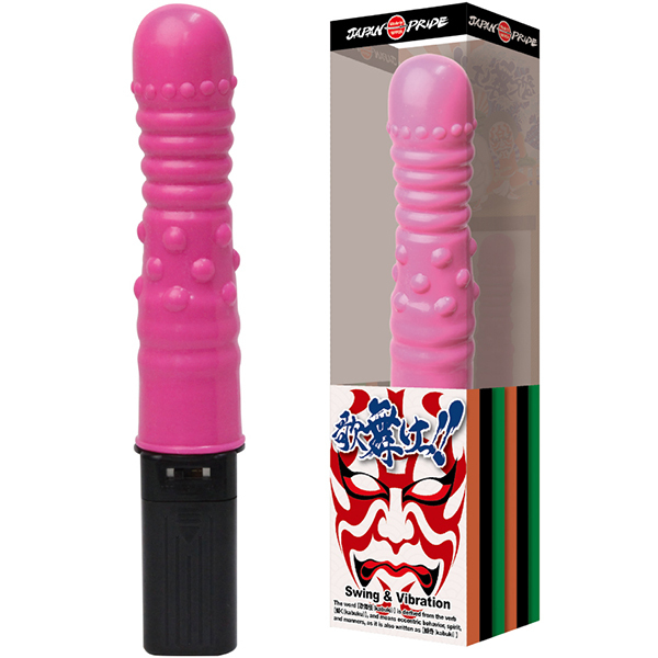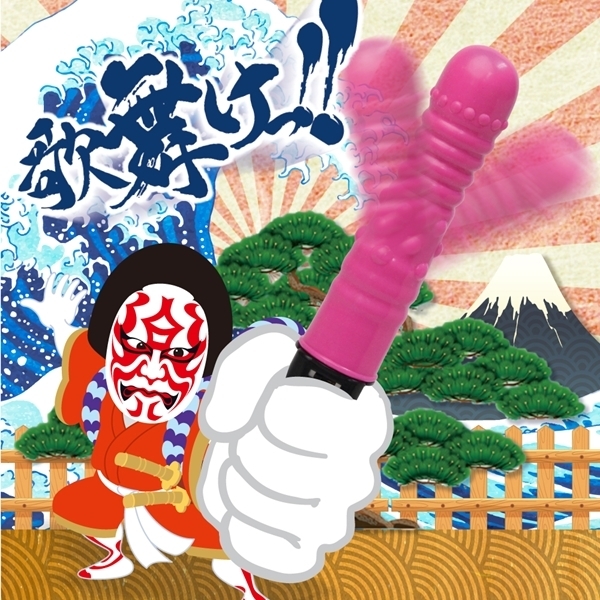 知らざあ回して見せやしょう!(知らねえのなら回してみせるぜ!)日頃の鬱憤解き放ち真の自分を解き放つ。歌舞けっ!歌舞けっ!己の欲に興ずるままに。6V強力スイングとバイブレーションが膣の中をかき乱す!挿入部に装飾された無数のイボが、Gスポットを強刺激!2段階強弱調整仕様なので操作も簡単。安心安全の日本国内製造品高弾力エラストマー製