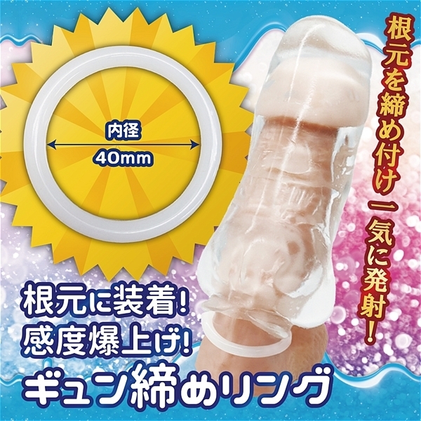 とろけるゼリーのようなホールと、ギュッと締めるリングの快感満点セット!とろけるやわもちホールと感度爆上げのギュン締めリング、さらにたっぷり楽しめるローションが付属。●もこもこきつリング