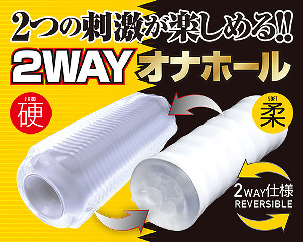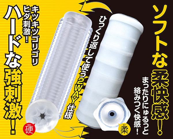 ソフトとハードの刺激をこれ一つで♪ひっくり返して使う両面仕様のリバーシブルオナホール「DUO(デュオ)」。●裏返して使うリバーシブルタイプ●ハード:クリア素材の細ヒダ構造●キツキツなゴリヒダの強刺激快感●ソフト:ふわふわ白素材の柔構造●にゅるっとまったり絡みつく快感●裏返しやすく洗浄しやすい貫通型。気分に合わせて使い分け♪表と裏で異なる挿入感を楽しめる2WAY仕様のオナホール。にゅるっと絡みつくソフトな快感と、ゴリヒダ刺激のハードな快感をお楽しみ下さい。