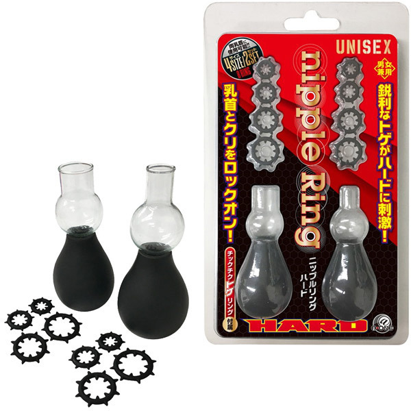 乳首やクリをロックオンして強制勃起!4サイズのトゲリングとポンプで楽しむ硬質仕上げの「ニップルリング ハード」。乳首の勃起状態を持続して激しい愛撫で絶頂へと導く乳首責めセットのハードバージョン!硬質で鋭利なトゲリングがより強力に、より刺激的に勃起をキープします。使い方は簡単!リングをポンプの吸引口にセットし、乳首やクリをポンプで吸い上げ勃起させてから、リングを乳首やクリにスライドして固定します。ポンプの吸い口は大小2サイズ!お好みのポイントに合わせてお使い頂けます。女性はもちろん、男性もご使用頂ける男女兼用タイプです。