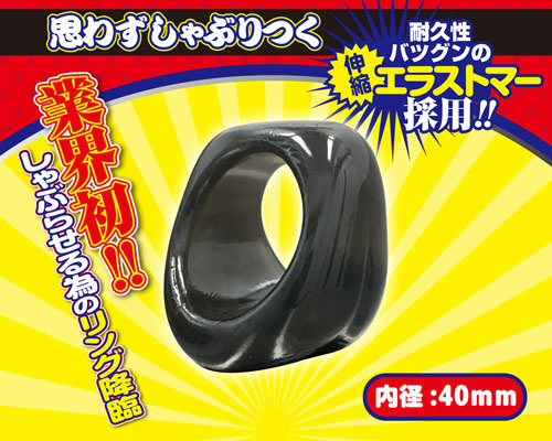 フェラをさせるのに特化した形状のリングです。耐久性と伸縮性の高いエラストマー素材を使っているため、リングの中央に開いた穴を左右に引っ張るだけでフルボッキ状態でも装着可能♪リングをしっかりと根本まで通せるため、しゃぶられ率は120%を突破!根本から上向きにリング全体が持ち上がるので、締め付けによる勃起力アップと同時に血流促進&機能性アップも期待できそうです♪