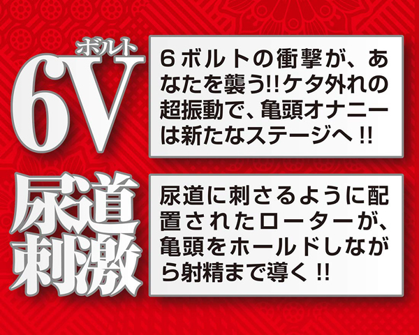 亀頭オナニーは神次元へ突入!常識を超えたけた外れの破壊力。最高クラスのローターを兼ね備えた『ブラックロック神威(かむい)』爆誕!シリーズ初の6ボルトローターを搭載したことによりブラックロックの名に恥じない質の良い濃厚な射精感を堪能可能。キャップは尿道に突き刺さるような形状になっているので、脳天から強烈な快感が突き抜けていくような深い刺激を楽しめる。今までとは一味違うブラックロック外伝でワンランク上の振動を試してみないか?