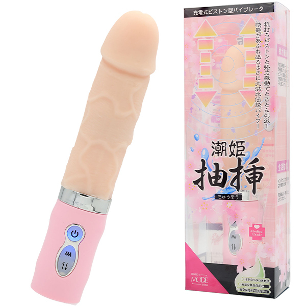 あの大人気バイブ潮姫シリーズに、新たに抽挿(ちゅうそう)が登場です。その名の通り、抜き差しピストンバイブです。ソフトタッチで密着感度の高い素材を使用しているので、あそこいっぱいに密着するかのような快感に包まれます。強力な先端モーターを内蔵しているので、ポルチオまで届く振動を楽しめます。もちろん、クリに押し付けるようにピストンさせることで挿入前プレイを楽しめます。充電式になっているので動作コスパも高く、ケーブルさえ持っていれば電池切れの心配もありません。ソケットはタイプCを採用しているのでスマホ用バッテリーなどからの充電も可能です。