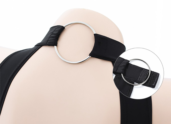 大きく肩の開いたアメリカンスリーブに、ざっくり切れ込んだサイドスリット。なめらかなストレッチ生地は伸びすぎずボディにフィット。前後の裾はふんどしのようにはためきます。ハイネックのカラー部分はマジックテープで留めるタイプ。