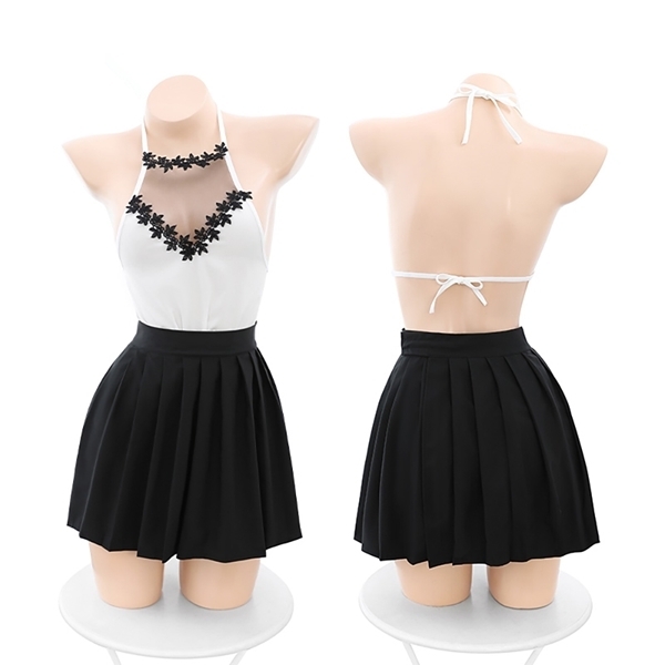 エプロンをモチーフにしたラブリーなデザインが特徴のベビードールです♪白と黒のコントラストにお花のデザインが加わり、シンプルながらも優雅な印象を与えます!デコルテや背中が見えるデザインで、上品さと可愛らしさを兼ね備えたスタイル♪スカート部分は面ファスナーで調節可能で、フィット感も自由に調整できます!お花モチーフのデザインが良妻感を演出し、羽織物との相性も抜群♪特別な日にも日常使いにもぴったりのアイテムで、清楚な魅力を引き立てる一着です!