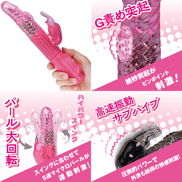 ハイパワースイング&サブバイブ振動にストレス臭カットの高品質TPE素材採用のジャストサイズバイブ登場。最大径30mmのジャストフィット形状に挿入部から約50mmの部分に絶妙に配置されたGス●ットしげき突起を配置・グルグル刺激するパール回転アクションも搭載。使い易いみんなのスタンダードバイブ。カラー:ブラック