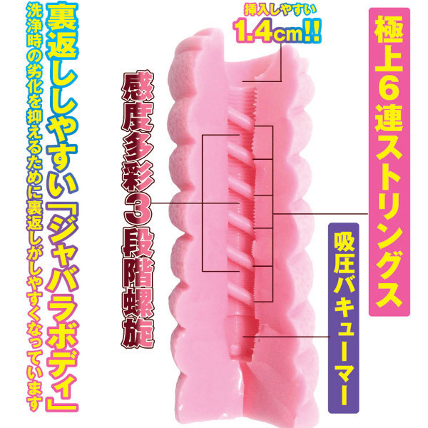 オナホ界の革命児!?ムービング形状の非貫通型オナホール「バンジーシェイク」がさらに進化して登場!内部のストリングスが、前作の3本から6本になりました。多彩な快感を生む6連ストリングスと、3段階の細かい螺旋ヒダで極上快感!内部のストリングスはカットして、自分好みにカスタマイズ可能!また、洗浄時に裏返しやすい蛇腹ボディを採用し、より扱いやすくなっています。グレードアップした「バンジーシェイク グランツ」で、未知の快感を堪能してください。