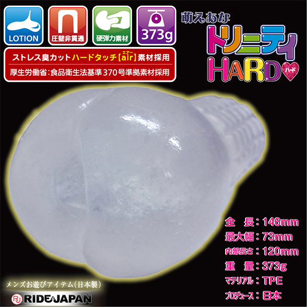 高弾力のディープな刺激!三面スパイラル構造で好評のオナホール「萌えあなトリニティ」に、高刺激ファン待望のハード版が登場しました。吸着イボ・縦横ヒダ・ツブ突起の膣壁がそれぞれ螺旋を描くオリジナルのトリプル構造はそのままに、よりハードな刺激を味わえるハードタッチ素材を採用!さらにパワーアップしたぎゅんぎゅんの膣圧感を思う存分ご堪能ください。