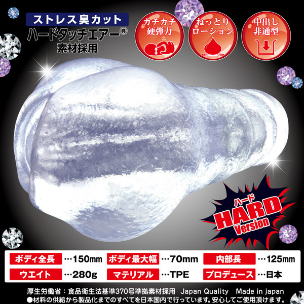絡み絡まれるにゅるヒダ天国オナホール『金のちつ ヤバイカラミティ』のハードバージョン!ストレス臭カットのハードタッチエアー素材を採用したカチカチ硬弾力タイプの「ヤバイカラミティ ハード」。前半8本、後半6本の縦ヒダそれぞれにイボヒダがびっしり!さらに、亀頭を強烈バキュームで吸い上げる最奥ゾーンがフィニッシュへと導きます。硬ビラが絡みまとわりつくような刺激に思わずスライドが加速するオナホール!ぬるぬるコリコリ至れり尽くせりの快感をお楽しみください。