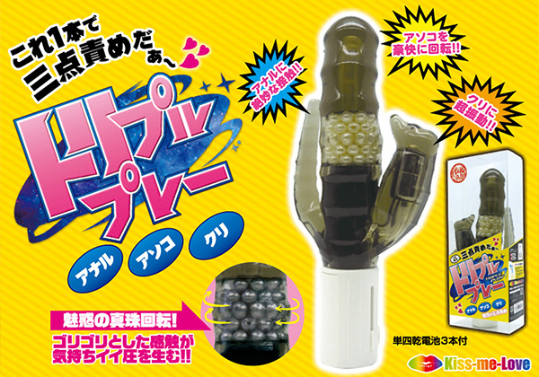 普段お使いのバイブではアソコとクリしか刺激できないでしょう?ですがこちらの「トリプルプレー」ならそんなお悩みもラクラク解消!「アナル」「アソコ」「クリ」がこれ1本で楽しめる魅惑の三点責めバイブ♪ボディは豪快なスイングと内蔵パールの回転でゴリゴリとした快感を生みだし、小バイブがクリに超振動を与えつつ小ぶりなしっぽがアナルを絶妙に刺激してくれます。むにゅっとしたヘッドが回転しながらパールで穴口付近を刺激、さらにクリトリスへのダイレクトなビンビン振動とアナルにも振動を与える3点責めが絶妙に気持ちいいです!スイング&振動をそれぞれ独立操作し、無段階調整コントローラーで細かいパワー調整が可能となっています。アナルにもちょっと刺激が欲しいときにもぜひどうぞ♪