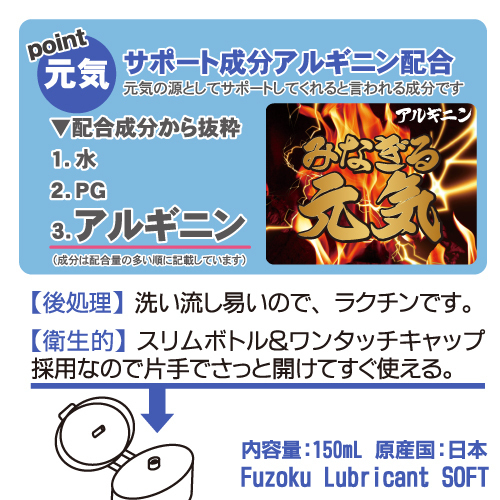 某プレミア風俗嬢に「また使いたい」を言わしめた風俗ローション。低粘度タイプ<成分>水、PG、アルギニン、クエン酸、グリセリン、フェノキシエタノール、ポリアクリル酸Na、メチルパラベン