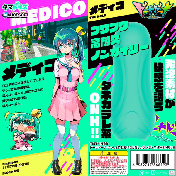 <ALICE SOFT(アリスソフト)とタマトイズのコラボ商品>アリスソフト最新作「ドーナドーナ いっしょにわるいことをしよう」がオナホになった!一般看護学生メディコは、締め付けながらザリザリと擦れるように刺激する構造♪新開発の発砲シリコン素材と合わさり、搾り取るような快感を味わえます。シリーズは全6種類展開!ドーナドーナファンも唸るコレクションしたくなる可愛いパッケージも注目です◎非貫通●メーカー型番:TMT-1469