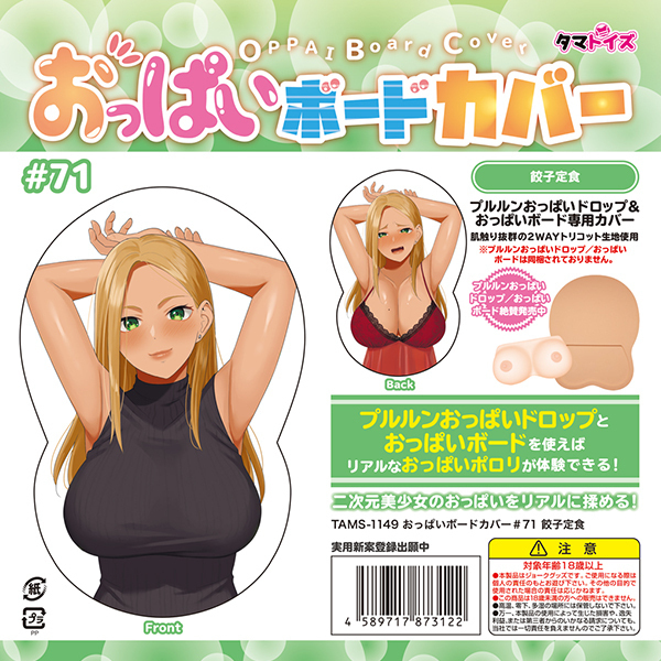 夢のような体験をあなたに届けるおっぱいボードカバー71。餃子定食氏によるイラストが、二次元美少女のおっぱいをリアルに感じさせます♪この専用カバーをプルルンおっぱいドロップ&おっぱいボードと組み合わせれば、まるで本物を揉んでいるかのような感覚を味わえるでしょう!カバーサイズはH560×W340mmで、どんな空間にもぴったり。素材は肌触りの良い2WAYトリコットを使用しており、触れるたびに心地よい感触を楽しめます♪プルルンおっぱいドロップ、おっぱいボードは別売りなので、完全なセットを求める方はご注意ください。餃子定食氏の描く、リアルなおっぱいの世界へとあなたを誘います!TAMS-1149