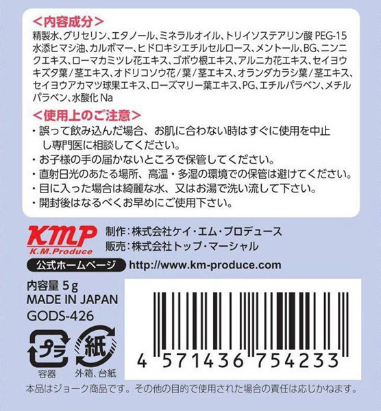 アダルトビデオメーカー制作の男性用の「エッチクリーム感度覚醒クリーム♂ (男性用)」内容量は5 gほどとなります。