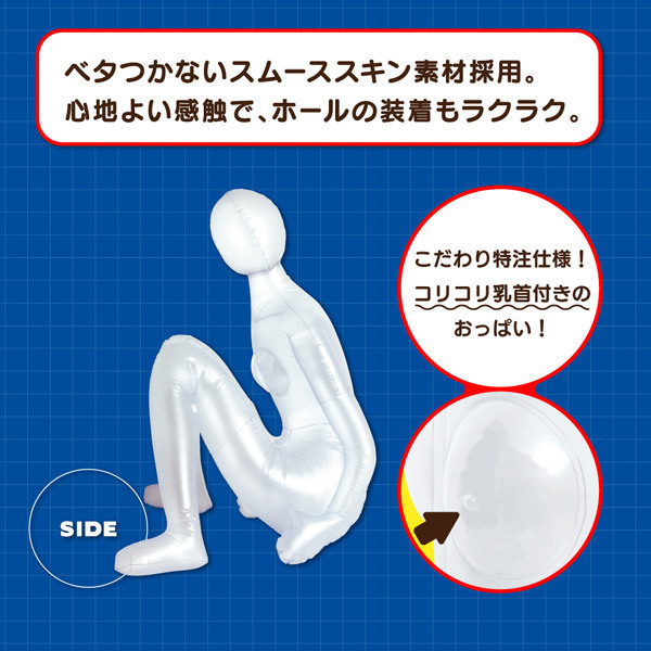 大人気エアドールシリーズ第3弾!どんな体位にも対応できるM字開脚タイプの「くうドール3」。●身長150cm・B72cm・W60cm・H90cm●未使用時もお座りできるM字開脚●手足の先まで再現したリアル造形●こだわり特注仕様のコリコリ乳首●ホールは小型から大型まで対応可●お肌に優しい環境調和型PVC仕様●ベタつき無しでホール装着も簡単●目立ちにくい背中に空気穴を配置●パッケージイラスト:つかこ氏。安定感抜群のむっちり安産型!使いやすさにこだわったM字開脚ポーズのエアーダッチ。正常位から後背位、抱きかかえながらの騎乗位も楽しめるオールマイティさが魅力です。