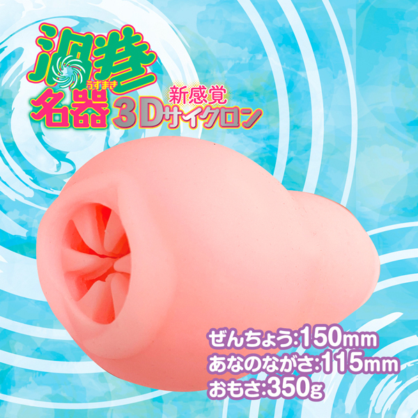 長さ13mmの縦ヒダが全方位から襲い掛かる快感!新感覚3Dサイクロン構造の非貫通型オナホ(ローション付)。弾力感が気持ちいいモチ肌素材を採用!スクリューさせたり上下にストロークさせて刺激を楽しもう♪安心と安全の日本製