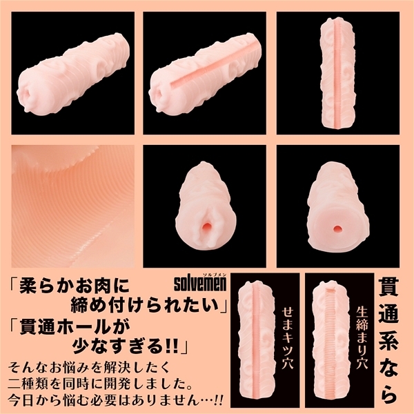 ソルブメンはあなたのお悩みを解決する存在です。「きっちり貫通」は今では珍しい貫通系となっております。洗いやすく衛生的で貫通系は最高です。使い方に幅が出るロングサイズ!キツくまとわりつく粘膜系素材を採用。もうオナホ選びには悩まない!!しかもまさかのリバーシブル仕様。裏返してもお使いになれます。あなたはオナホ選びに悩む必要はなくなります。あなたのためにソルブメンがいるのです。安心安全の日本製で繰り返し何度でも利用が可能です。