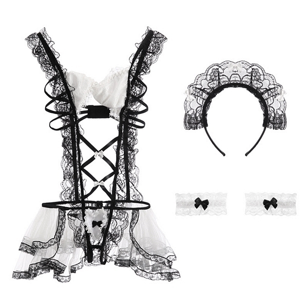 大胆なディティールと贅沢なレース使いで色っぽく仕上げるメイドコスプレ。エアリー感と上品さがロマンティックに仕上げ、立体感のあるチュールでラブリーに演出。刺激的な肌見せがセクシーにアピールし、360度どこから見られても妖艶さを表現。●カラー:ホワイト