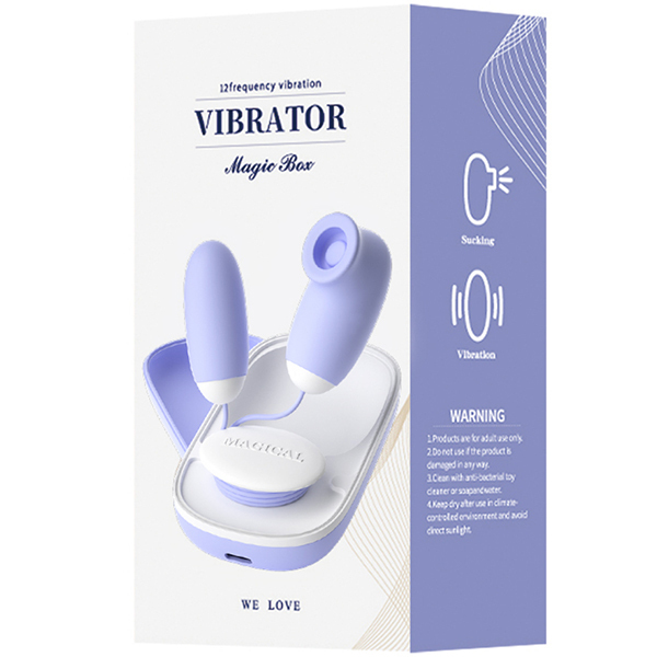 まるでコンパクトのようなオシャレな外観を持つ秘密の箱の中から、まるでマジックのように2種類のローターが現れる「マジックボックス」の登場。箱の蓋を開けると2種類のマジカルローターが格納されてます。小型の吸引タイプと通常タイプの2つもローターは可愛らしい見た目でも、毎分1万回転のワイルドな振動をもたらします。各ローターは最大12種類の振動パターンの変更ができます。独立した電源ボタンを採用しており、単体で振動させたり同時に振動させる事も可能。化粧BOXのような見た目なので鞄に入れたり部屋に置いても目立ちません。充電部分はタイプC型のUSBケーブルを採用。●カラー:パープル