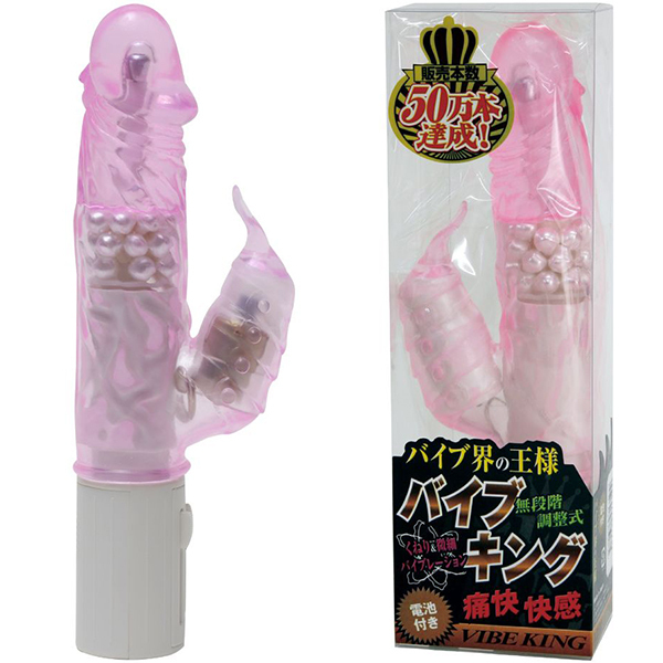 販売本数50万本達成!その人気はまさにバイブ界の王様!バイブ選びに迷ったら、まずはこれ!性能・機能・大きさ・ボディデザイン・お値段の全てが満足できるハイクオリティのバイブレーター「バイブキング」!多くのリピーターに愛されて50万本の称号は伊達じゃありません!しっかりと力強いくねりスイングに強烈なバイブレーション。二枚舌でテンポよく刺激するフラッパー(子機)と、回転と振動が別々で操作できるスライドコントローラー。挿入可能長さ10cmに太さ3.5cmとなる小ぶりでスリムなジャパニーズサイズ。女性に受ける清潔感のあるクリアカラーにゴテゴテしないスッキリとしたボディデザイン。安心の純日本製。シンプルで使いやすく初めての人でもストレスなくお使いいただけるバイブレーターです。こちらは凹凸の刺激が気持ち良い高刺激なパール入り仕様となっております。カラー:ピンク